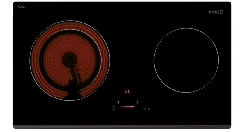 1 db Indukciós főzőzóna 22 cm-es BOOSTER funkcióval, Slider Touch Control érintővezérlés, 1 db kétkörös 27/21 cm-es HIGH-LIGHT főzőzóna, gyerekzár, időzítő, 9 fokozat, teljesítmény: 5,74 kW