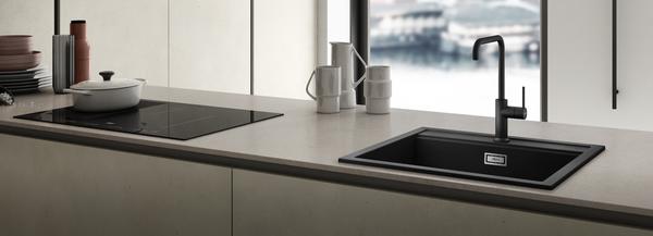 Fekete Keratek mosogató az Elleci kínálatából, színazonos csapteleppel. (forrás: elleci.com)