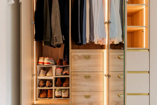 A beépített szekrény elrendezését teljesen egyéni igényeinkre szabhatjuk. (Forrás: Google)